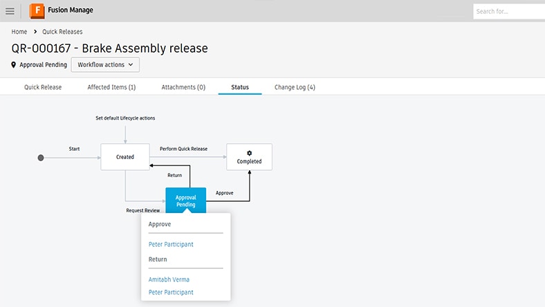 Fusion Contributor users working in Fusion Manage can view product lifecycle management data, create reports, and contribute to workflows.