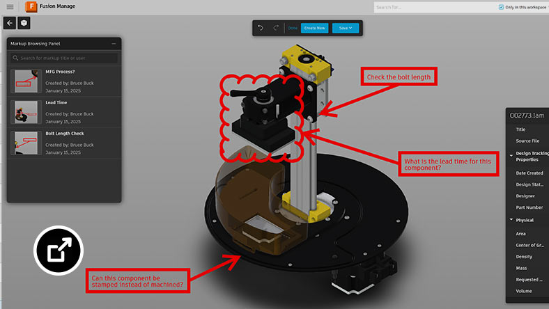 Enable real-time, multi-user updates with collaborative BOM and property editing tools. Maintain comprehensive BOMs with information for purchasing, assembling, production planning, manufacturing, and more.