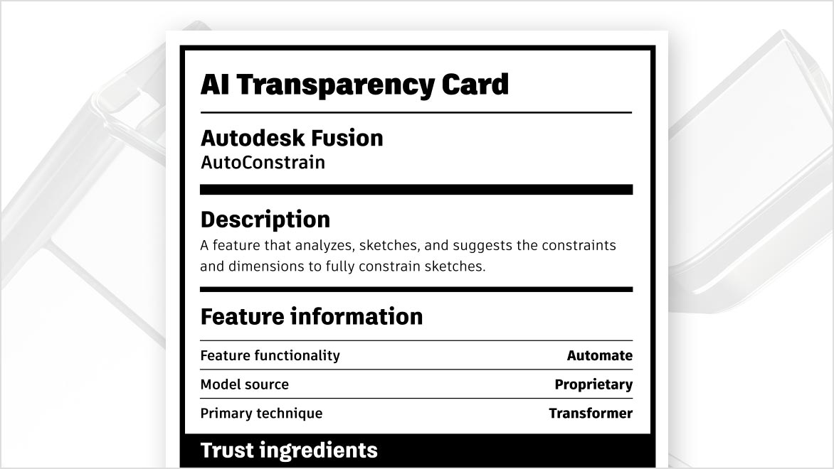 The objective of Autodesk's AI policies and governance is to deliver value and minimize risk to privacy and intellectual property. This e-book details the rigorous standards and practices Autodesk employs to develop trusted AI within our products.